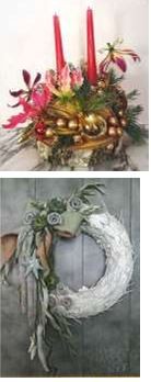 Noël fleuri : couronne à accrocher ou à poser en guise de centre de table .